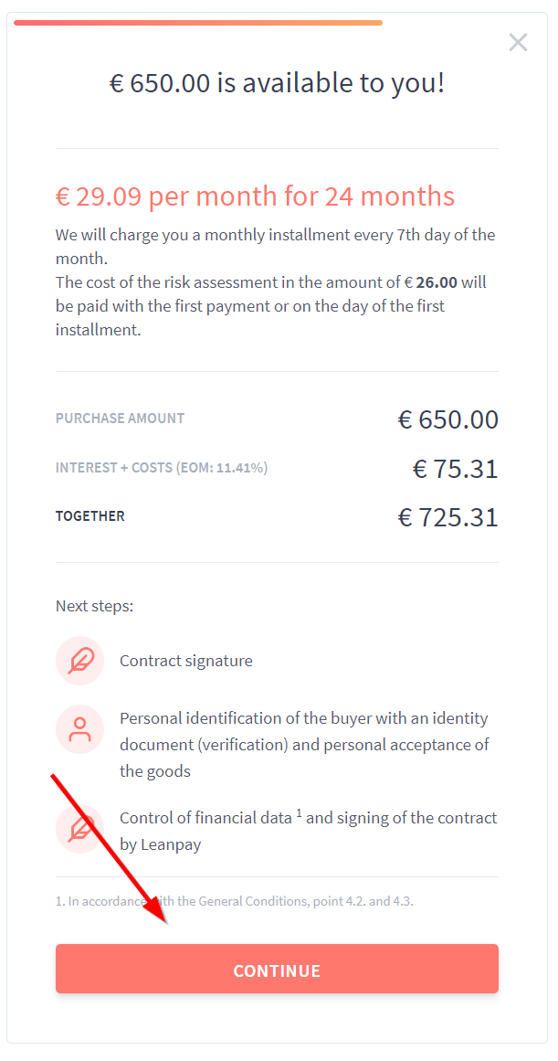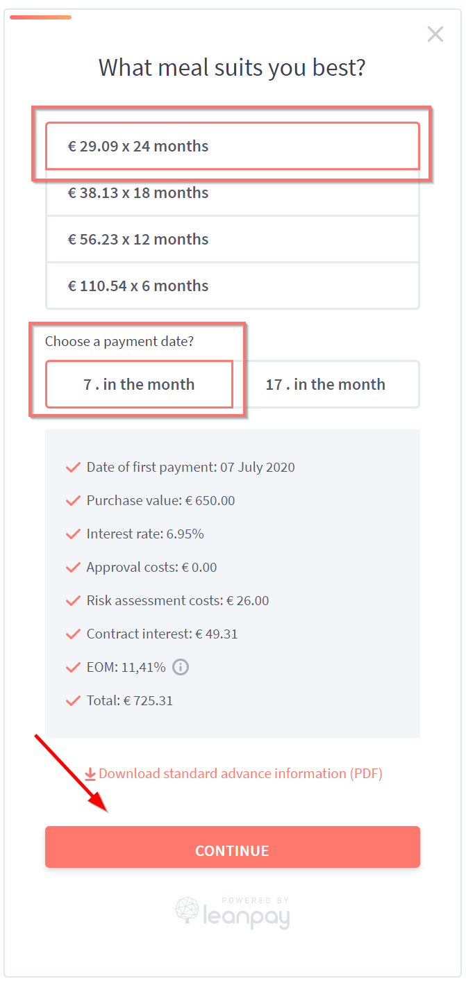 - Select desired installlment option
